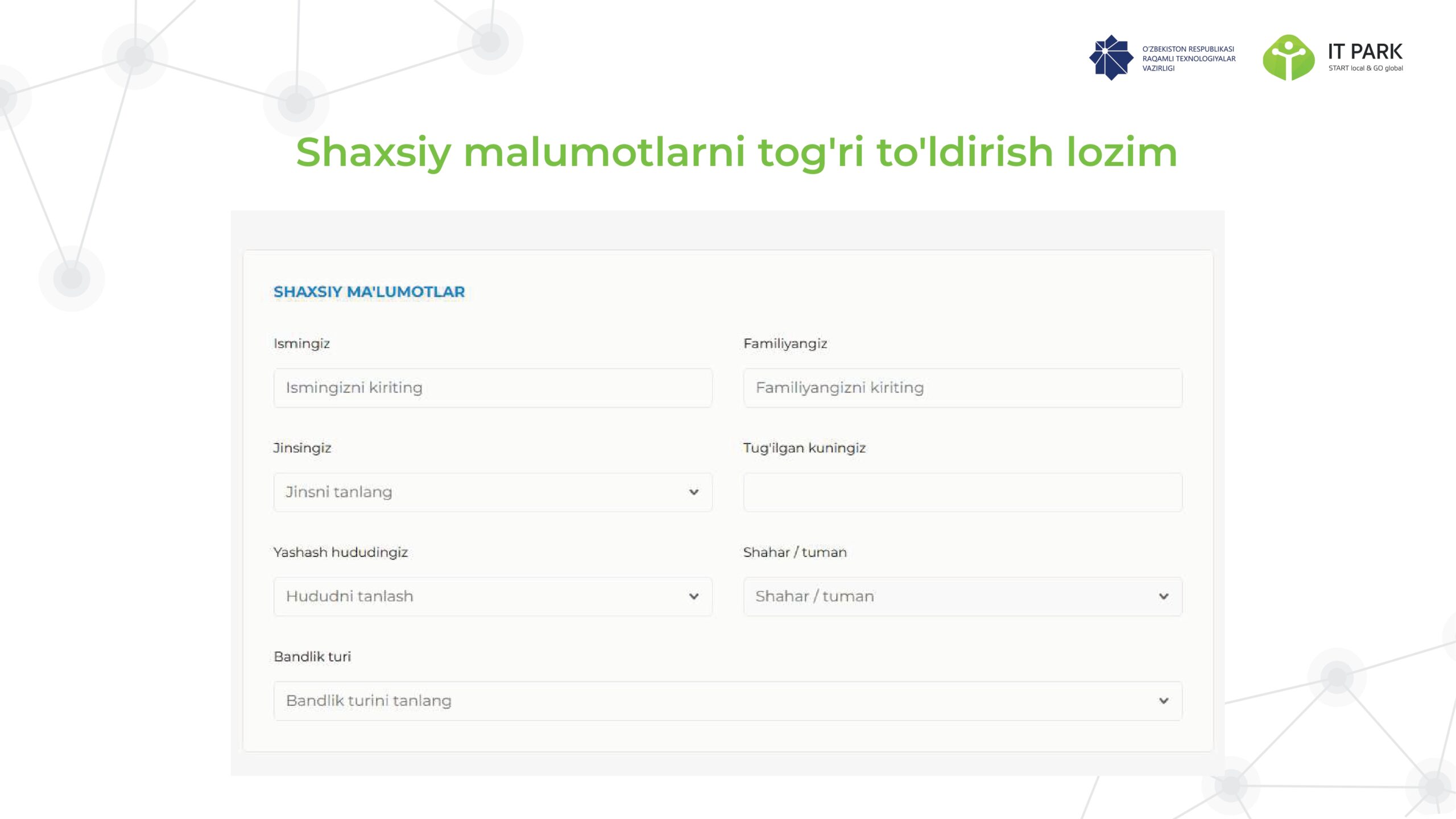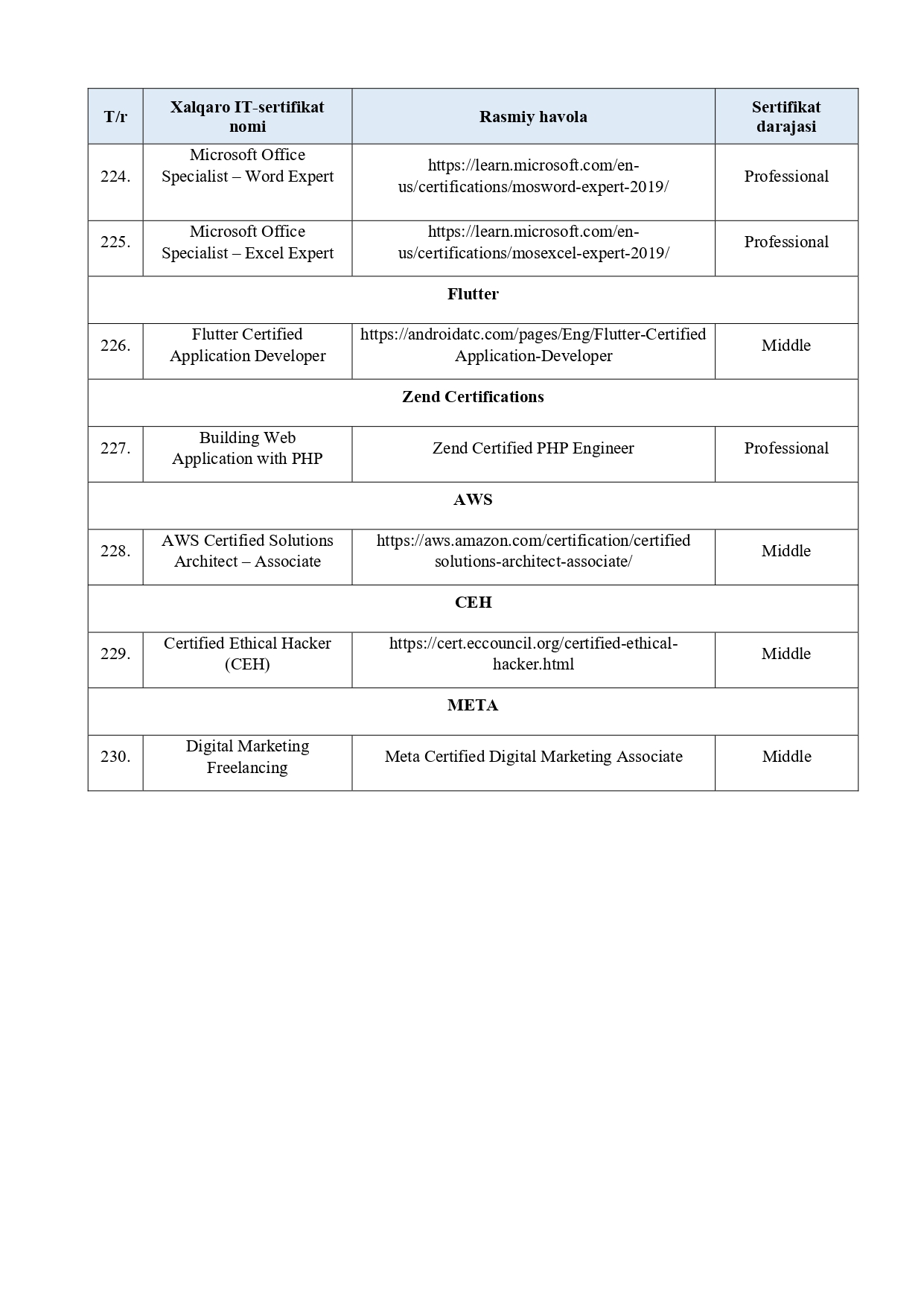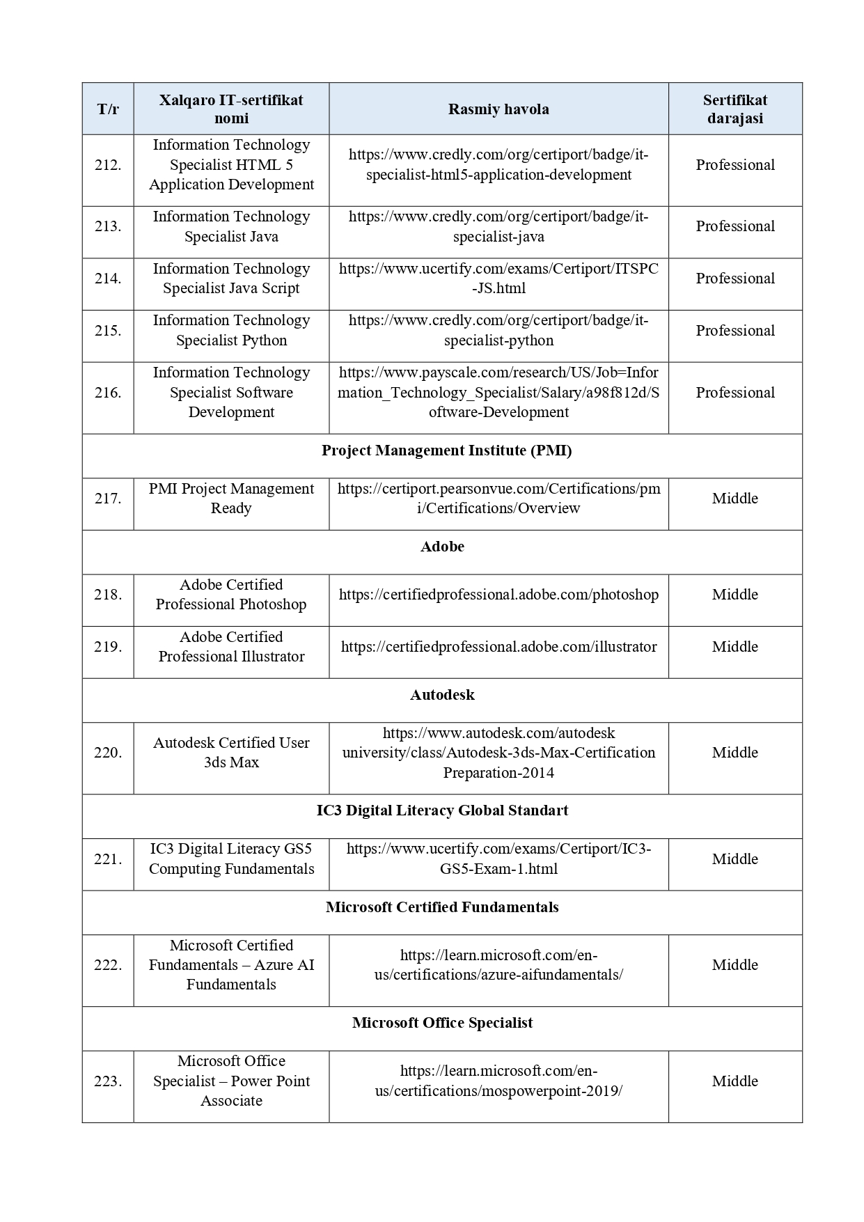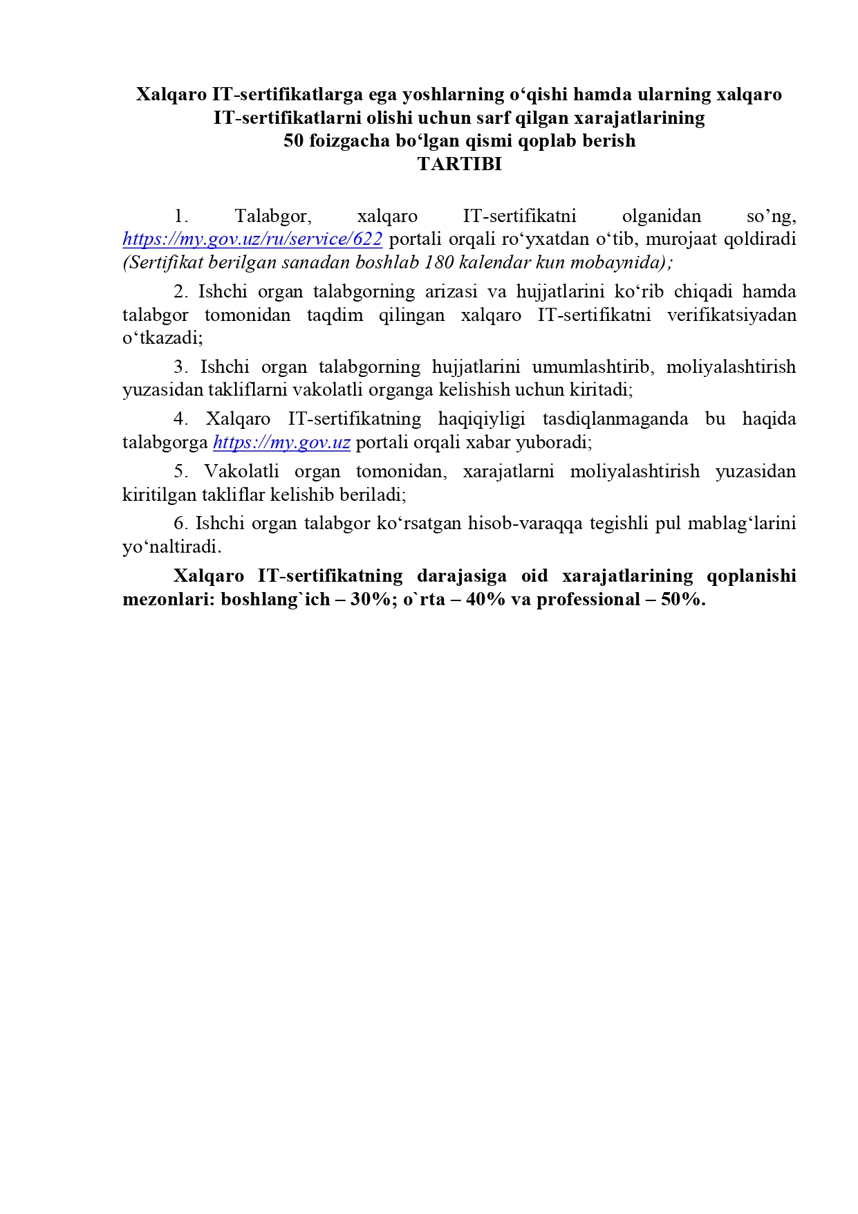 O‘zbekiston Respublikasi Prezidentining 2023-yil 11-sentabrdagi PQ-300-son qarori ijrosini taʼminlash maqsadida Raqamli texnologiyalar vazirligi tomonidan IT-sohasiga qiziquvchi iqtidorli talaba yoshlarga “Bir million dasturchi” loyihasining https://uzbekcoders.uz platformasi orqali AQSHning “Cousera” kompaniyasining onlayn ta’lim resurlaridan foydalanish imkoniyati yaratilganligini maʼlum qilamiz.