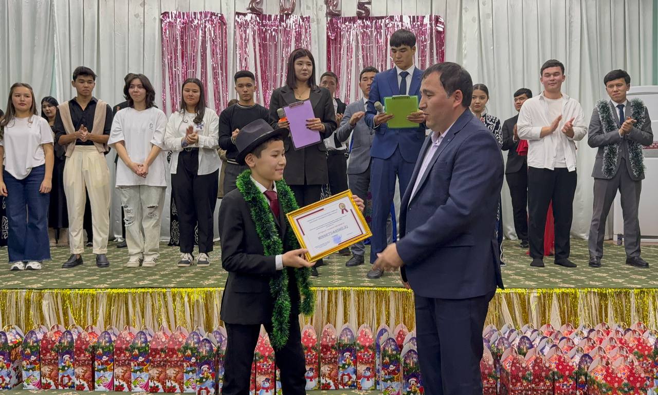 Shundan so‘ng yil davomida bir qator yaxshi natijaga erishgan mehnat jamoasi a’zolariga filial rahbariyati tomonidan tayyorlangan Faxriy yorliqlar, Yangi yil sovg‘alari hamda O‘zbekiston Respublikasi Oliy ta’lim, fan va innovatsiyalar vazirligining «2024-2025 o‘quv yili uchun respublika oliy ta’lim muassasalarining bakalavriat bosqichi talabalariga O‘zbekiston Respublikasi Prezidenti va nomdar davlat stipendiyalarini tayinlash to‘g‘risida»gi buyrug‘i asosida davlat stipendiyalari tanlovida g‘olib deb topilgan filial talabalariga bir oylik stependiyaning bir barobari miqdorida mukofot «Vaucher» topshirildi.