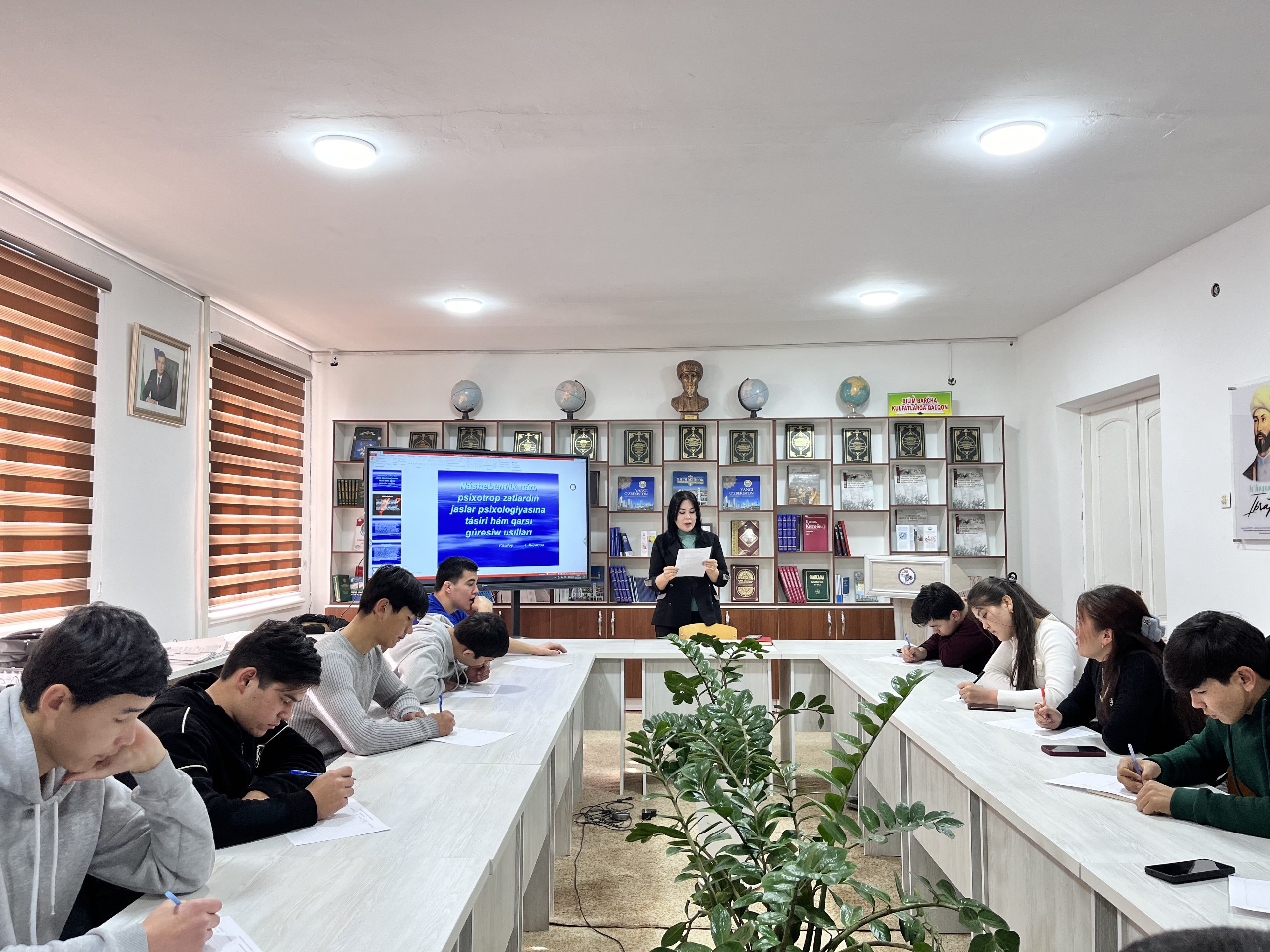 Bugun O‘zbekiston davlat jismoniy tarbiya va sport universiteti Nukus filiali talabalari o‘rtasida «Jinoyatchilik va huquqbuzarliklarning oldini olish» va «Giyohvandlikka qarshi kurashish bo‘yicha» filial psixologi A.Alliyarova tomonidan so‘rovnoma o‘tkazildi.
