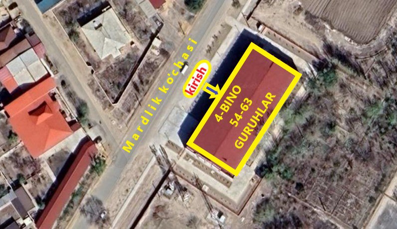 Qoraqalpog‘iston Respublikasida test sinovlari o‘tkaziladigan 4-binoning joylashuvi
