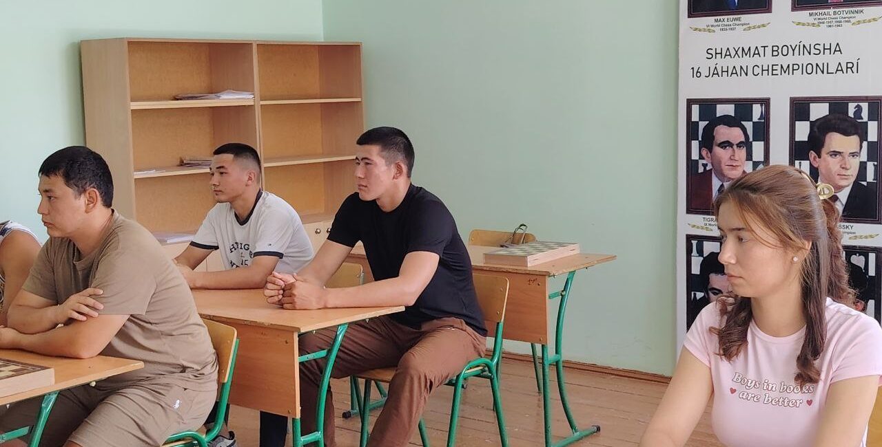 O‘zbekiston davlat jismoniy tarbiya va sport universiteti Nukus filiali tomonidan «Dolzarb 90 kun» doirasida filialda tahsil olayotgan talaba yoshlarning yozgi ta’til kunlarini ko‘ngilli o‘tkazish maqsadida sportning shaxmat turidan mahorat darsi o‘tkazildi.