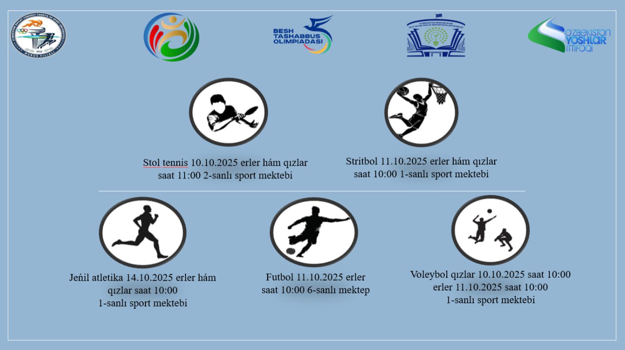 – yengil atletika 14-oktyabr soat 10:00 da 1-sonli sport maktabi.