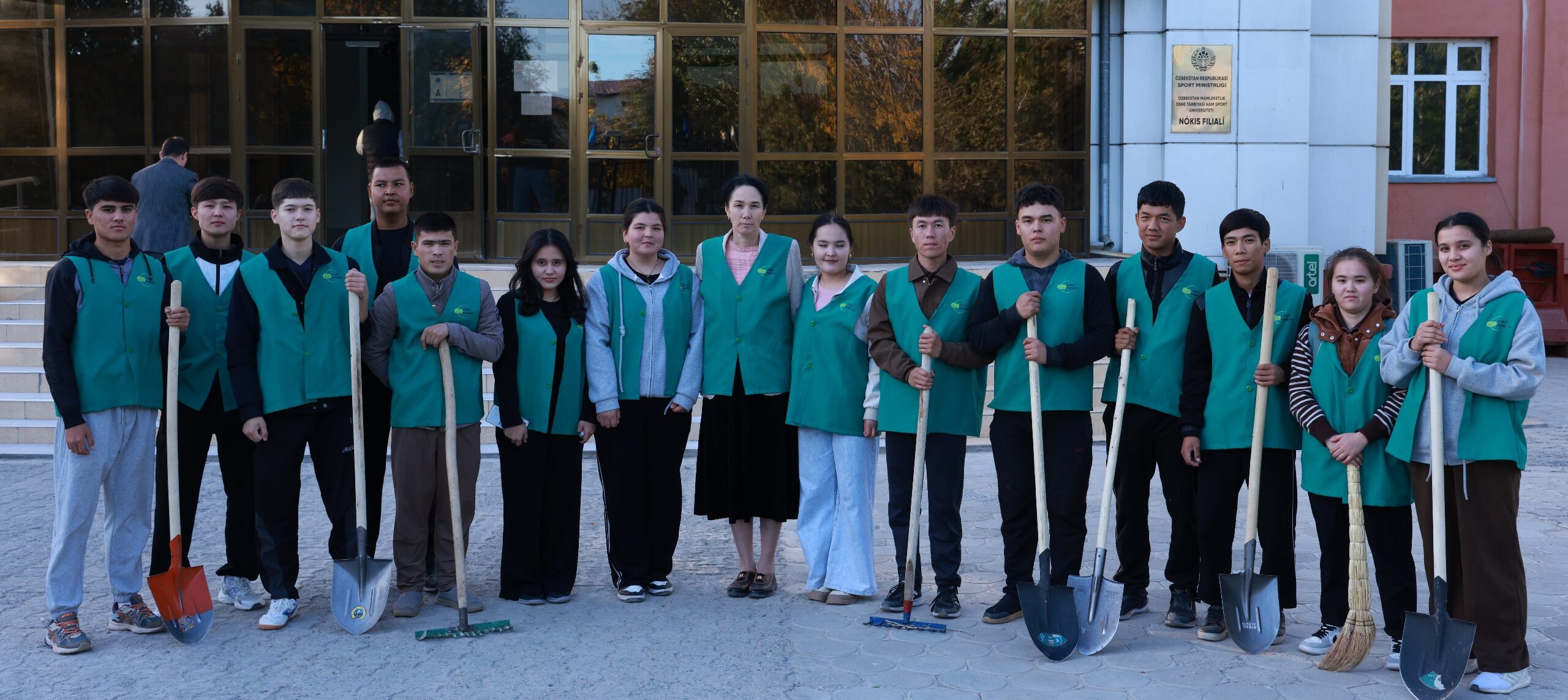 «Tozalik oyligi» doirasida O‘zbekiston davlat jismoniy tarbiya va sport universiteti Nukus filiali mehnat jamoasi va talabalari filial atrofida obodonlashtirish ishlarini olib bormoqda.