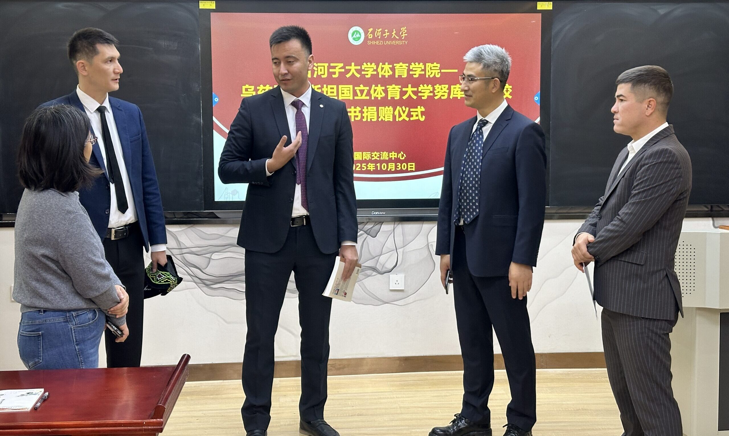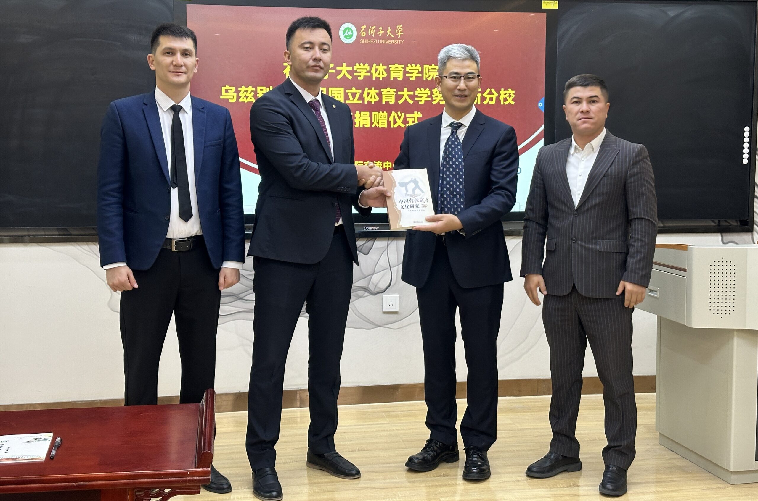 Hamkorlik bo‘yicha olib borilgan muzokaralardan so‘ng Shixetszi universiteti Jismoniy madaniyat va sport fakulteti dekan o‘rinbosari Lu Pen tomonidan o‘n besh nomdagi kitoblar filial uchun topshirildi.