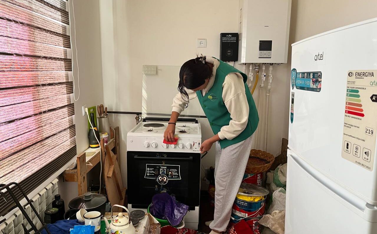 Bugun filial talabalari tyutor A.Qosnazarov rahbarligida shahrimizdagi o‘zgalarning yordamiga muhtoj fuqaroning ahvolidan xabar oldi. O‘g‘il bolalar uning uy oldi tomorqalarini yovvoyi o‘tlardan tozalasa, qizlar esa uy ichlarini tozaladi.