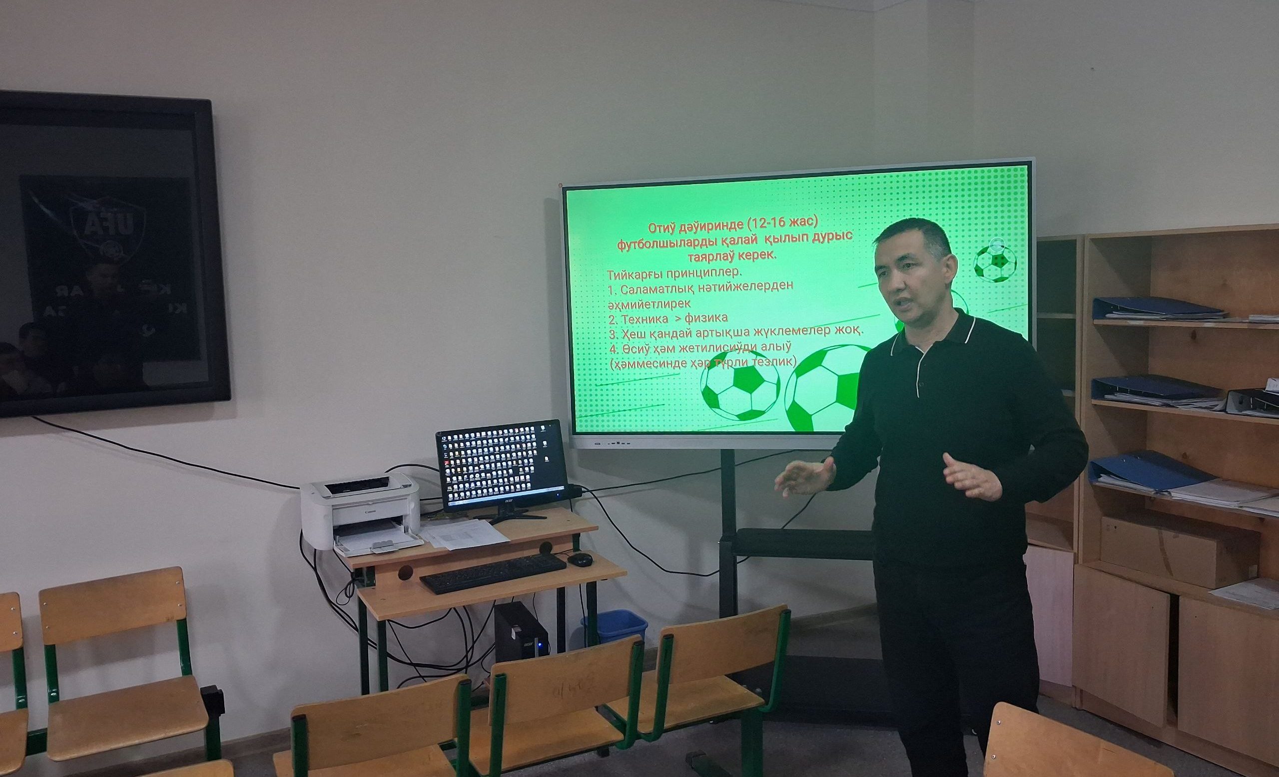 Bu borada «Sport o‘yinlari nazariyasi va metodikasi» kafedrasi professor-o‘qituvchilari Islom Abdullayev va Timur Seytmuratovlar «Qoraqalpog‘iston Respublikasi Futbol akademiyasi» murabbiylariga «Futbol akademiyalarida bolalarning jismoniy tayyorgarligini rivojlantirish» mavzusida seminar-trening o‘tkazdi.