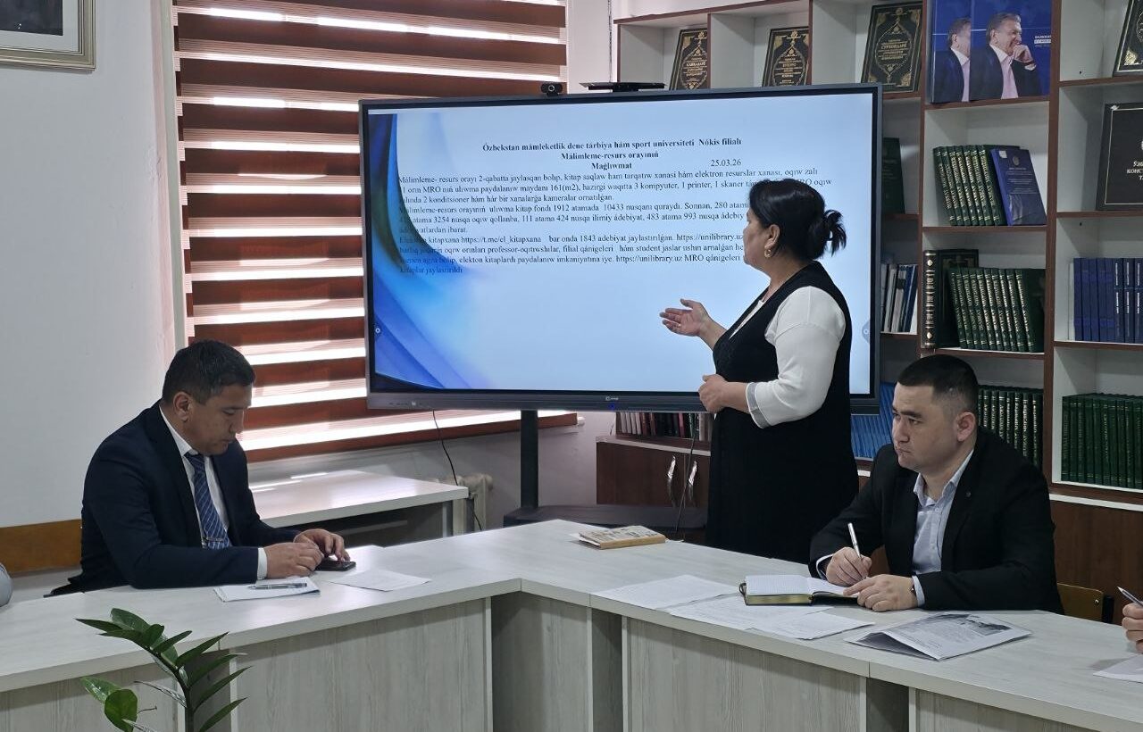 Dastlab O‘zbekiston davlat jismoniy tarbiya va sport universiteti Nukus filiali direktori B.Erimbetovning O‘zbekiston Respublikasi Prezidenti, O‘zbekiston Respublikasi hukumati, mahalliy boshqaruv organlari tomonidan 2026 yil mart oyida qabul qilingan normativ-huquqiy hujjatlar to‘g‘risidagi ma’ruzasi tinglandi.