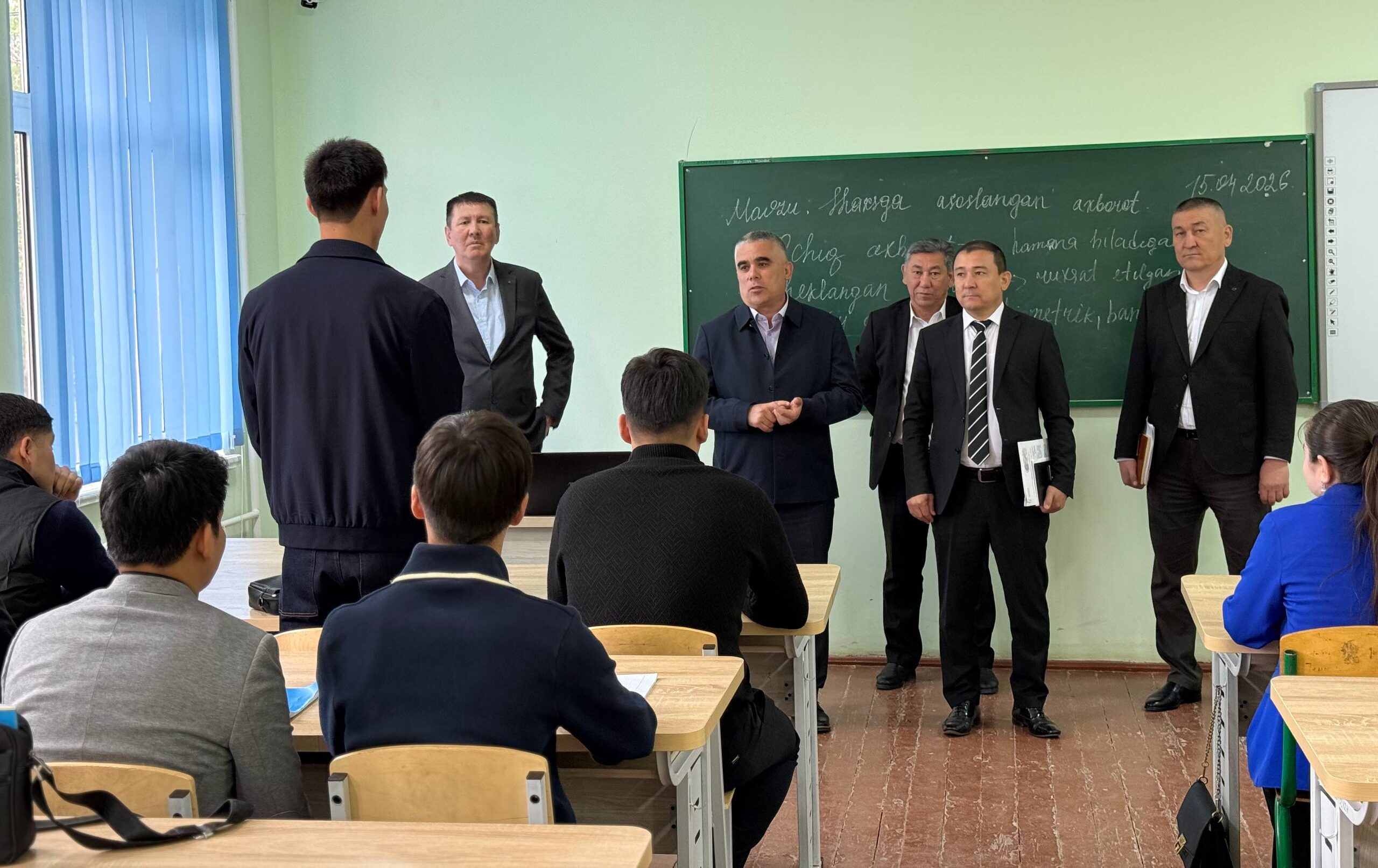 Rektor xizmat safarini dastlab filial talabalarining dars jarayoni bilan tanishishdan boshladi. Tanishuv jarayonida har bir auditoriyaga kirib talabalar bilan uchrashib, ular bilan yaqindan suhbatlashdi va yurtimizda oliy ta’lim tizimidagi oldinga siljishlar, ayniqsa, sportchilarga yaratilayotgan imkoniyatlarga alohida to‘xtalib o‘tdi.
