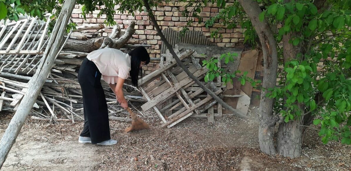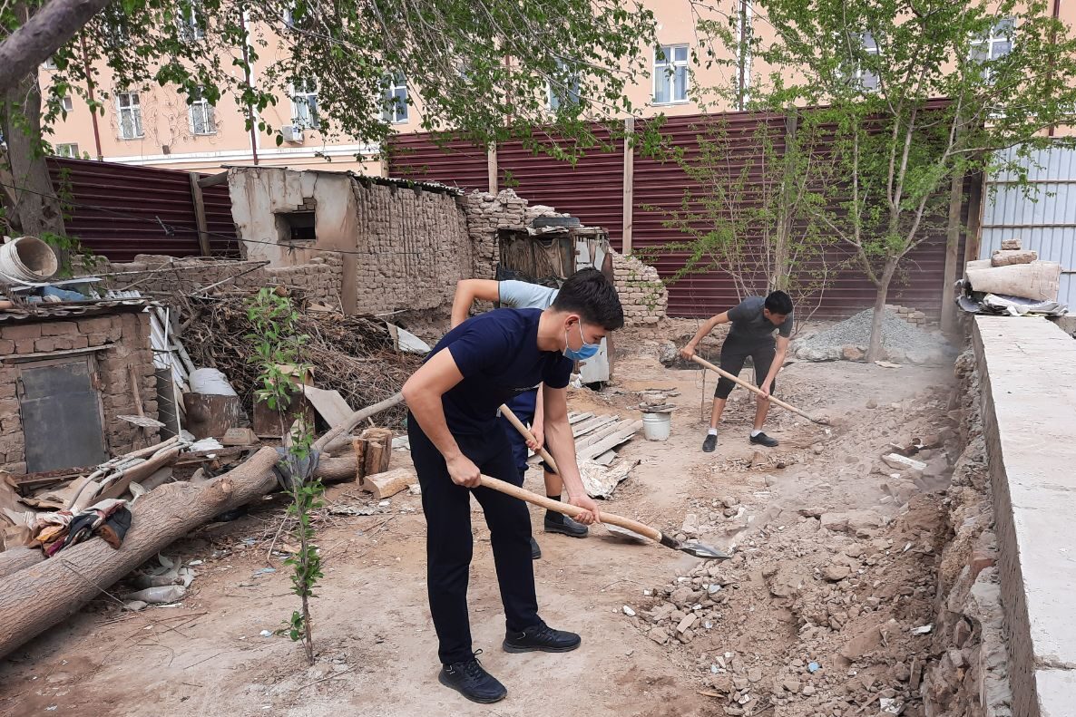 Usı qarar tiykarında Ózbekstan mámleketlik dene tárbiyası hám sport universiteti Nókis filialında bilim alıp atırǵan bir topar kewilli student-jaslar tyutorlar, psixologlar menen birgelikte «Turan» mákan puqaralar jıyını aymaǵında jasawshı mayıplıǵı bar, baǵıwshısınan ayırılǵan, jalǵız baslı Zulqumar Redjapovanıń turaq jayınıń dógereklerin tazalap, úy aldı qıytaq jerlerin awdarıw jumıslarına járdem berdi.