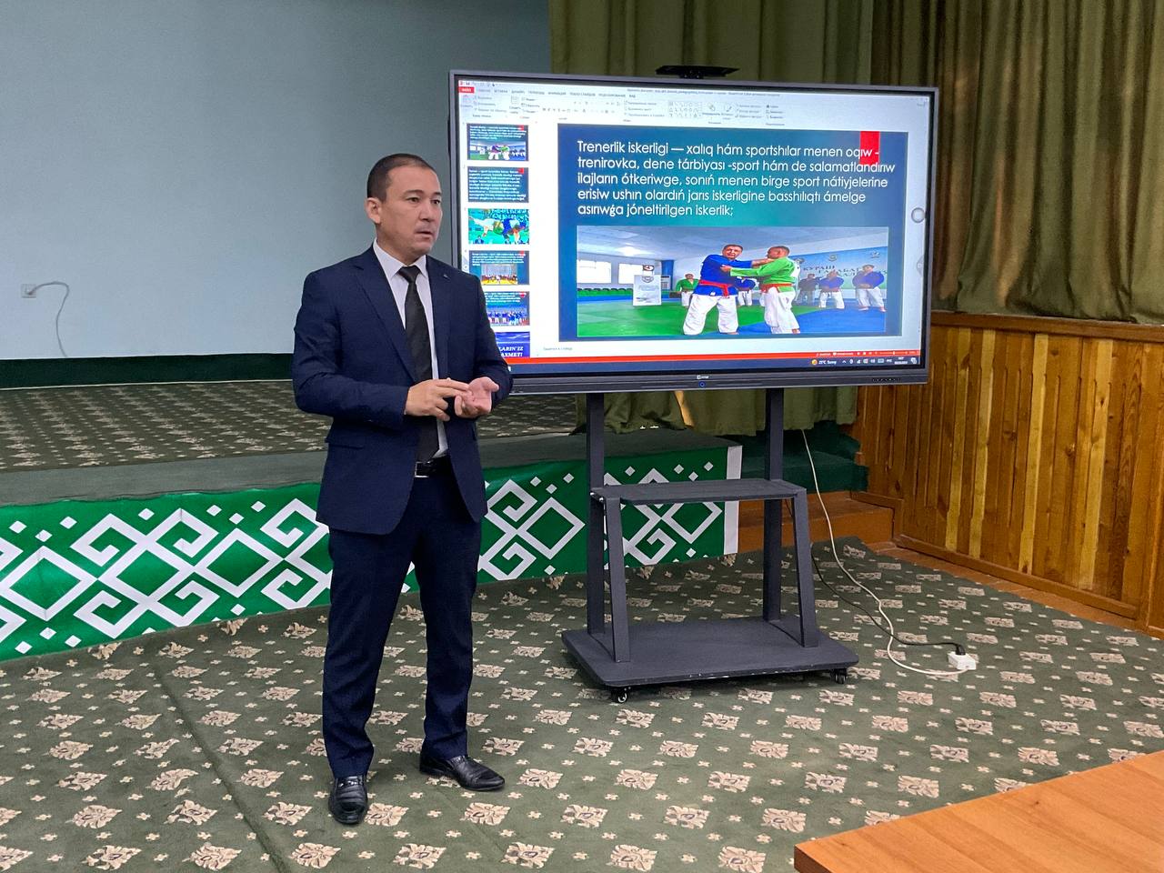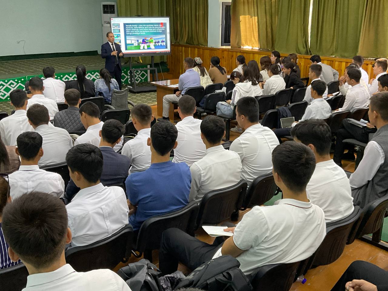 Ózbekstan mámleketlik dene tárbiyası hám sport universiteti Nókis filialı direktorı, professor Bayrambay Erimbetov 6-sentyabr – «Xalıqaralıq Kurash kúni» múnásibeti menen «Sport túrleri» fakulteti «Kurash» qánigeliginiń studentlerine «Kurash milliy sport túrin xalıqaralıq arenaǵa alıp shıǵıw» atamasında lekciya ótti.