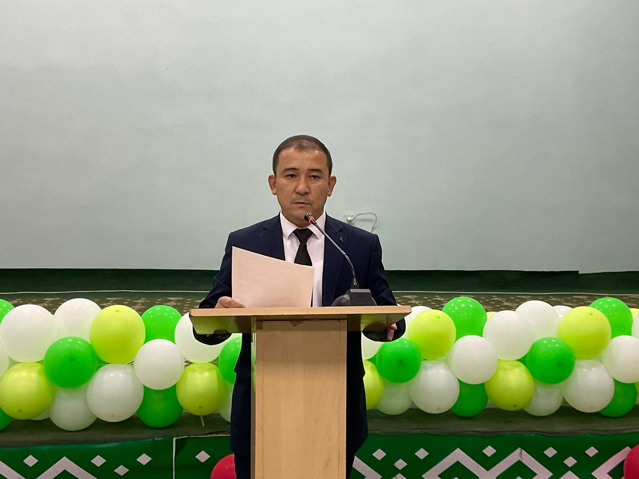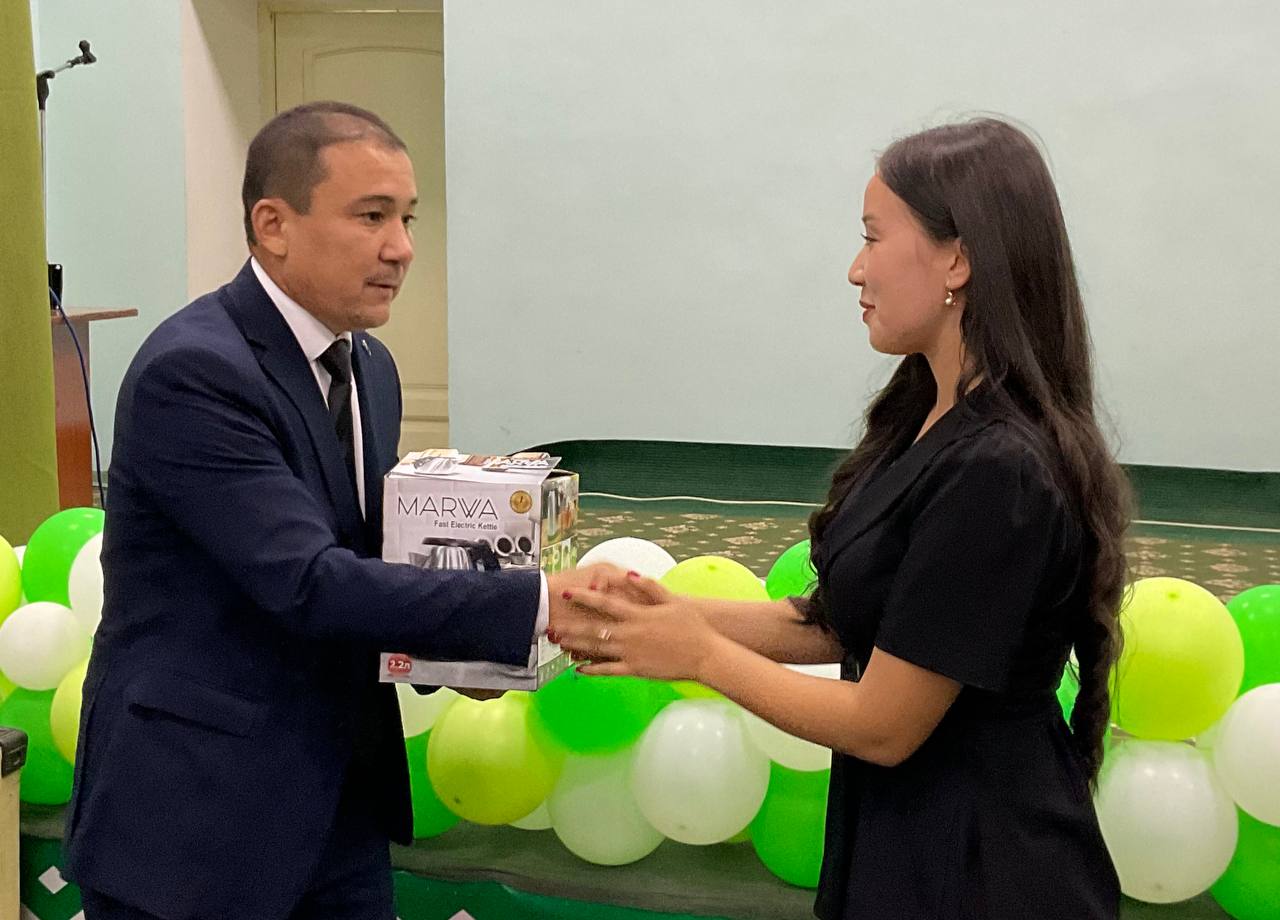 Saltanatlı kesheni filial direktorı, professor Bayrambay Erimbetov kiris sóz benen ashıp berdi hám filial jámáátini bayram menen qızǵın qutlıqladı.