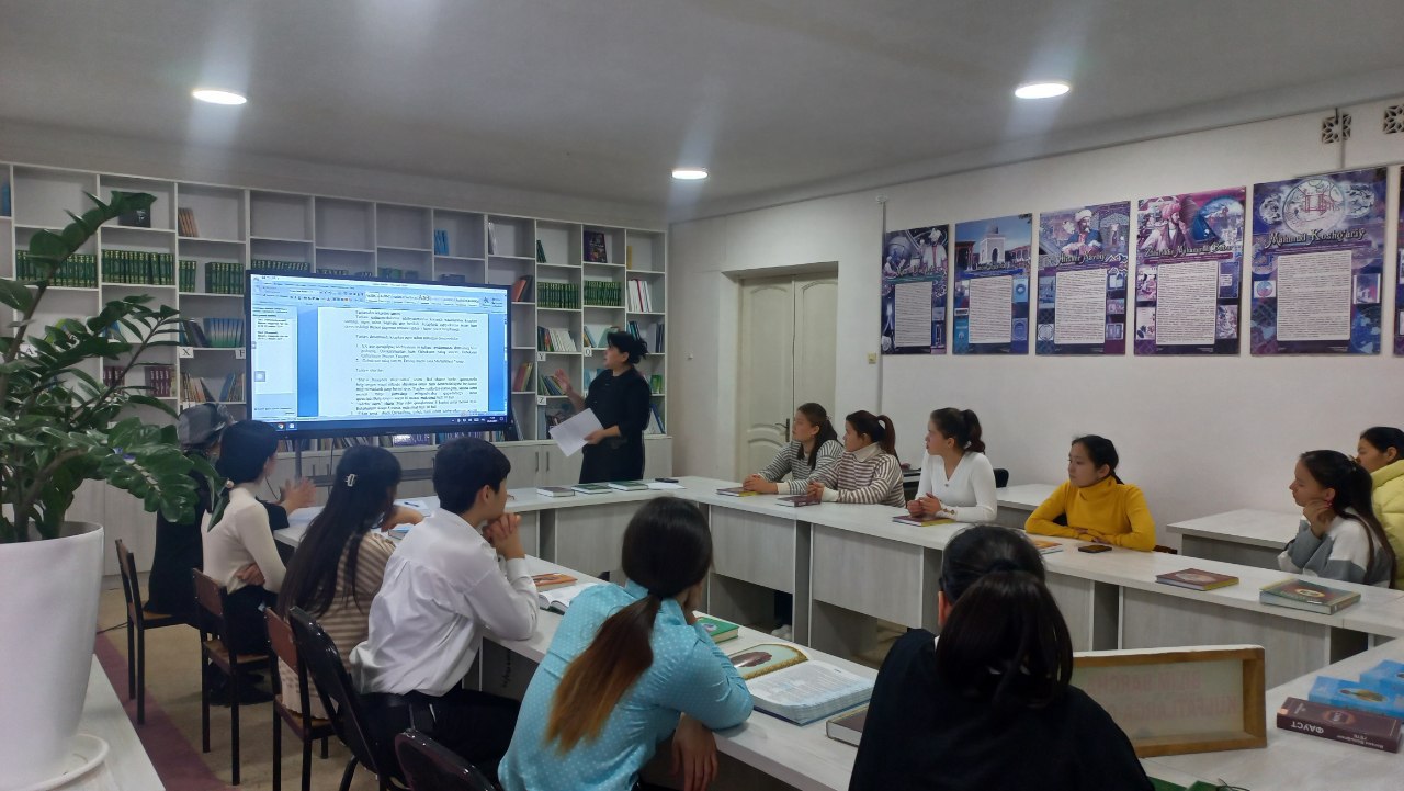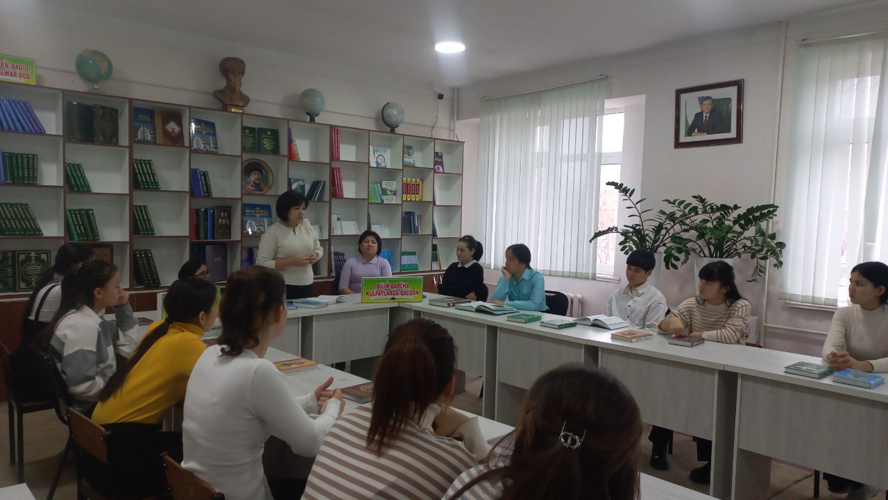 Usı qarar tiykarında Ózbekstan mámleketlik dene tárbiyası hám sport universiteti Nókis filialı málimleme resurs orayında filial direktorınıń hayal-qızlar máseleleri boyınsha másláhátshisi B.Allambergenova tárepinen «Kitapqumarlıq shańaraqtan baslanadı, kitapqumar ana, kitapqumar bala» atamasında sáwbetlesiw keshesi bolıp ótti.