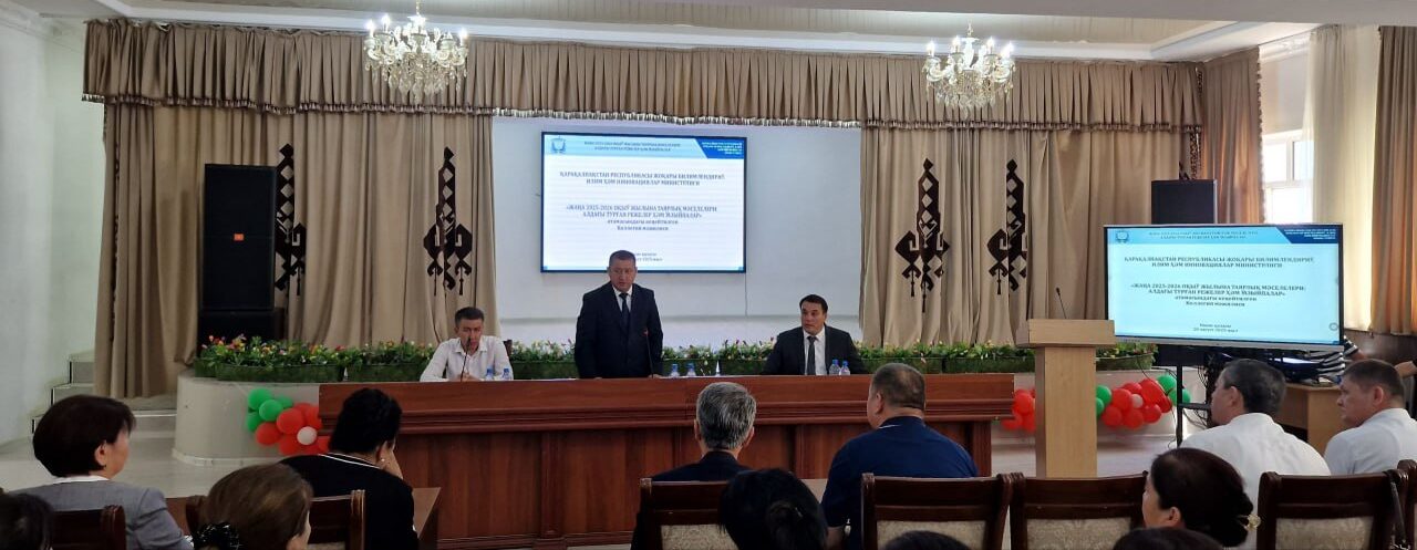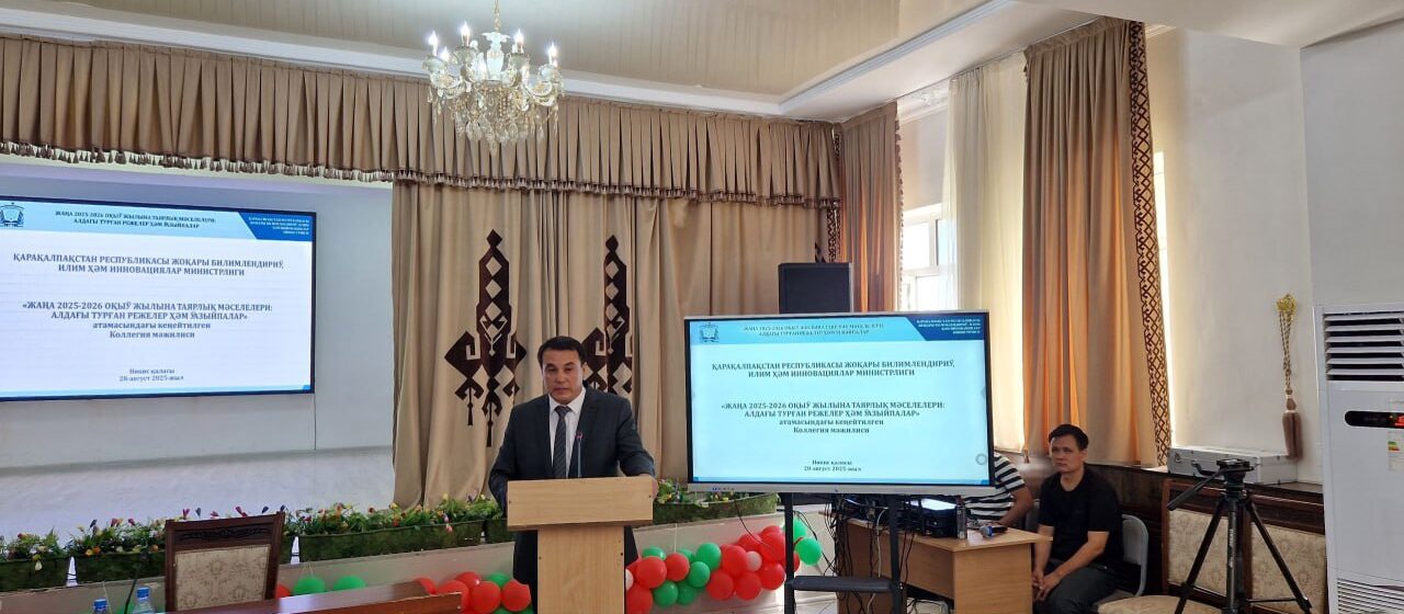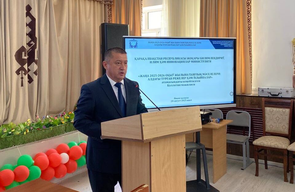 Búgin Qaraqalpaqstan Respublikası Joqarı bilimlendiriw, ilim hám innovaciyalar ministrligi tárepinen «Jańa 2025-2026-oqıw jılına tayarlıq máseleleri: aldaǵı turǵan rejeler hám wazıypalar» atamasındaǵı keńeytilgen Kollegiya májilisi ótkerildi.